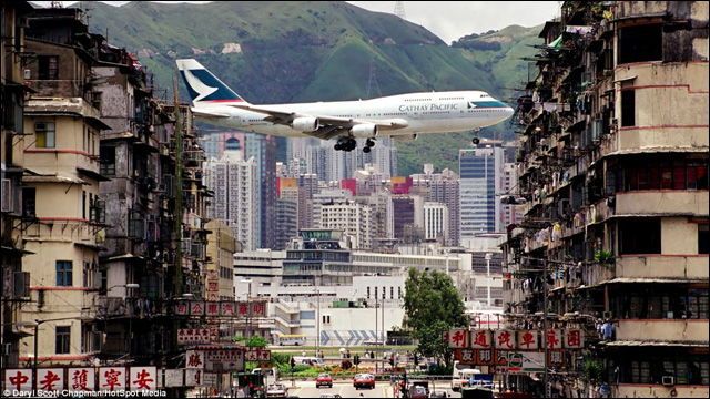 現在使われている香港国際空港(チェクラップコク国際空港)が開港したのは、香港が英国から中国に返還された1997年の1年後の1998年だ。それ以前に使われていた香港空港は、啓徳空港という名で、九龍半島側の街のまん真ん中と思えるような場所にあった。海側から香港上空に入ってくるジェット機は、狭い香港上空をぐぅっと右旋回しながら啓徳空港の一本しかない滑走路に飛び込んでいく。当時からハブ空港として混雑していたけれど、世界で一番離発着が難しい空港のひとつともいわれていた。そのころは飛行機の着陸航路のすぐ真下に九龍城という巨大なビル状のスラム街があった。古い黒ずくめのスラムビルをかすめるように飛ぶ大きなジェット機は、香港の名物風景でもあった。