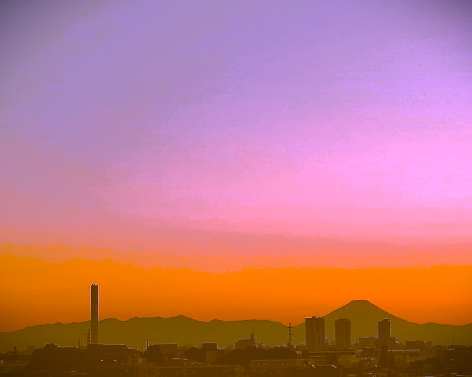 友人、荒井Aono育美さんが職場(東京練馬区北部)から、今秋ある日の夕刻、西南にレンズを向けて撮影してくれた写真です。東京杉並区育ちの私にもなじみ深い“故郷の風景”なのかなぁ。