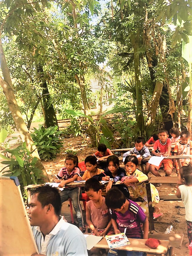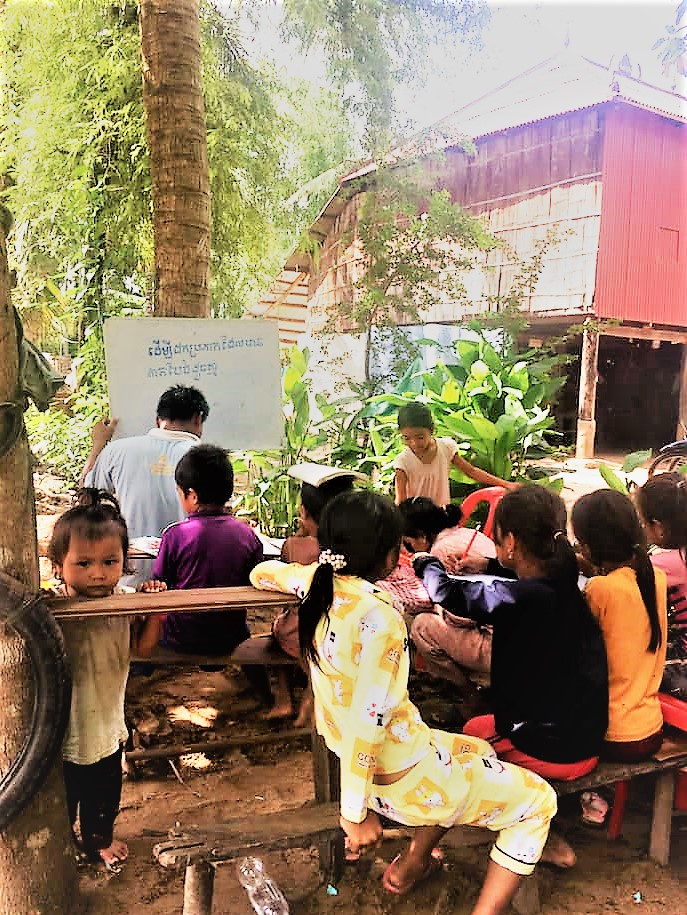 トゥボーンクモム州(数年前にコンポンチャム州の東地域が新しく州となった場所)の農村で開かれている私塾。先生は農民なのだそうです。学校が閉まっている中、このような私塾が田舎では子どもたちにとって大事な場所になっています。(写真は、この村出身の知人よりいただきました)