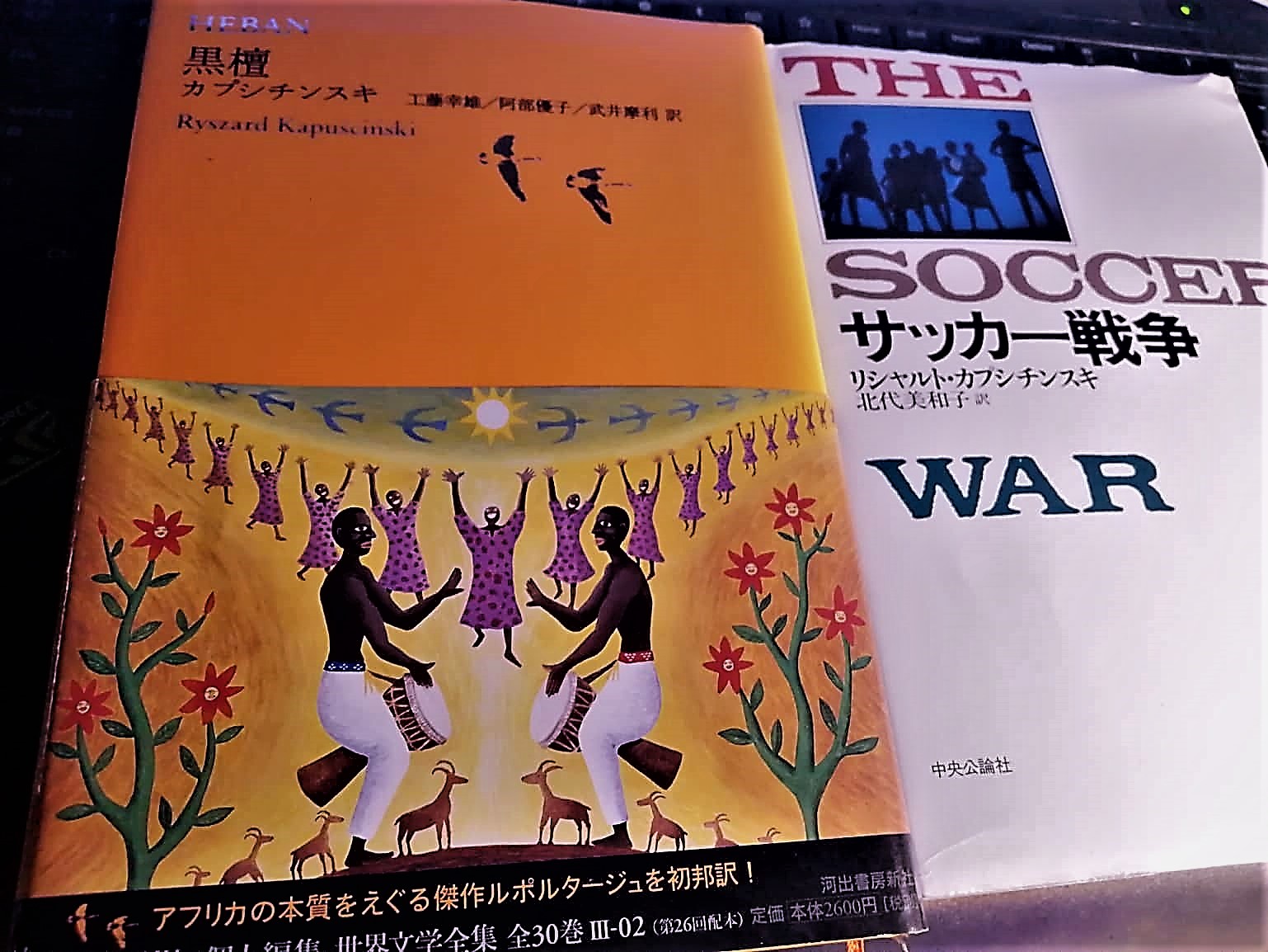 で、彼に敬意を評して、今回はポーランド語をタイトルにお借りした、というわけです。今、手元にあるのは、『黒壇 池澤直樹=個人編集 世界文学全集 III-02』(工藤幸雄/阿部優子/武井摩利 訳 河出書房出版 2010)、『サッカー戦争』(北代美和子 中央公論社 1993)の2冊です。後者はポーランド語で書かれた原作を英語に訳した本が底本になっていますけれど、前者はポーランド語の原書から直接の日本語訳です。すばらしい! カプシチンスキの日本語翻訳本、あと一冊見つけました。かなり古い中古本ですけれど、もう仕方がない、ポチ、です。
