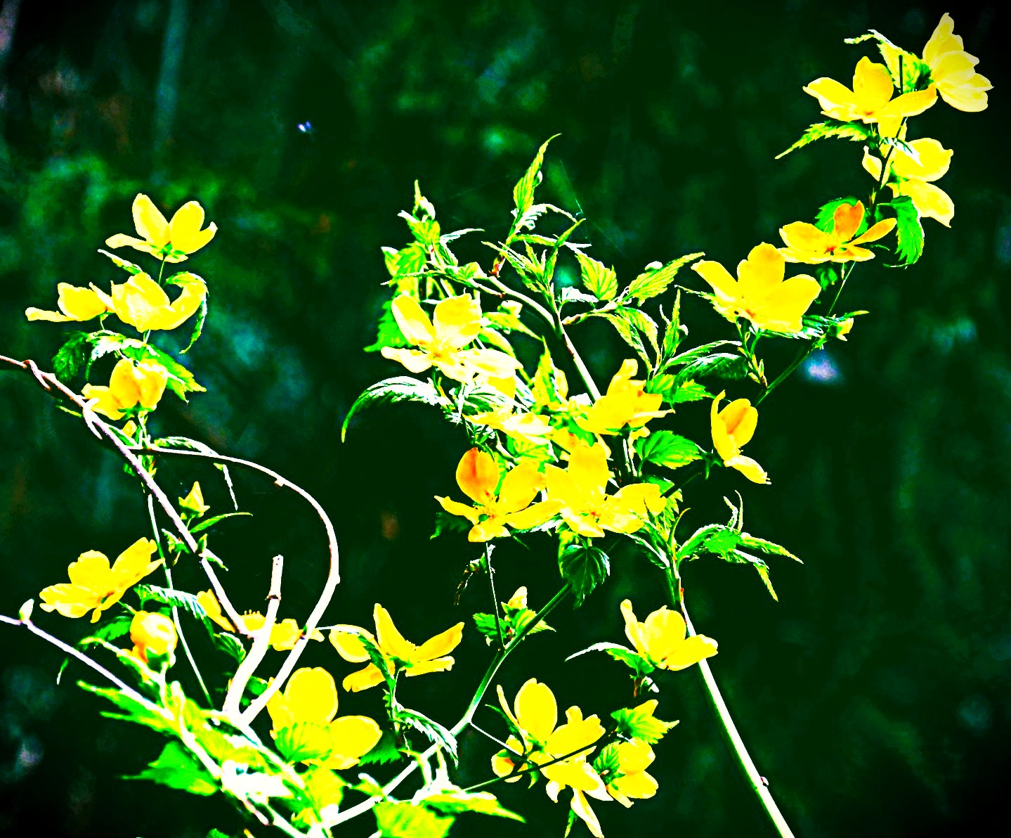 ヤマブキの花。ヤマブキは私には私の好きな花のひとつです。大学時代にはヤマブキ色の遠乗り自転車に乗ってたしなぁ。写真撮影は小野久先生です。